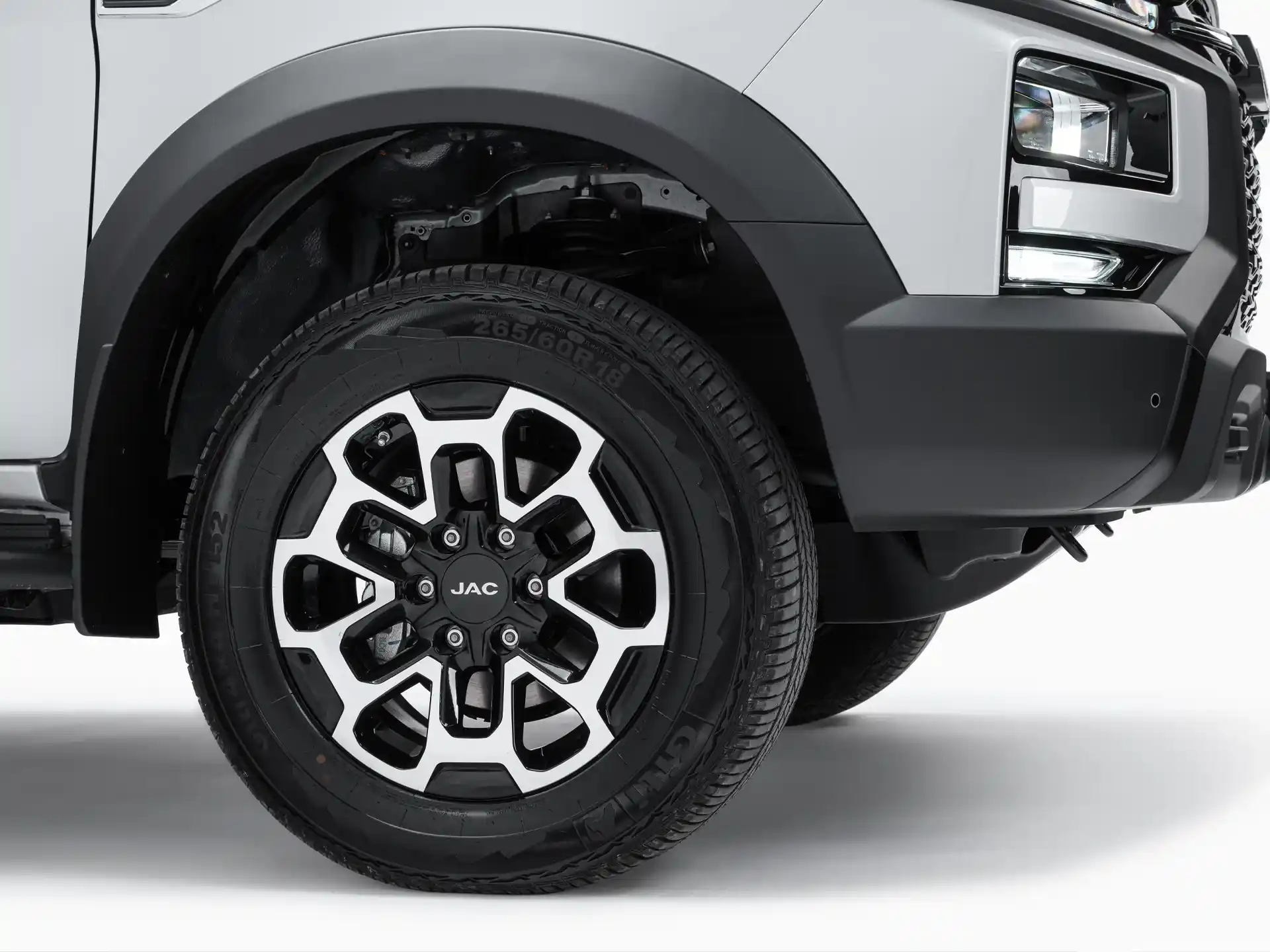 Pickup został wyposażony w 18-calowe felgi oraz opony w rozmiarze 265/60 R18, które zapewniają doskonałą przyczepność i stabilność. Takie połączenie gwarantuje pewne prowadzenie zarówno na drodze, jak i poza nią. To solidna baza do zadań specjalnych i codziennej jazdy.